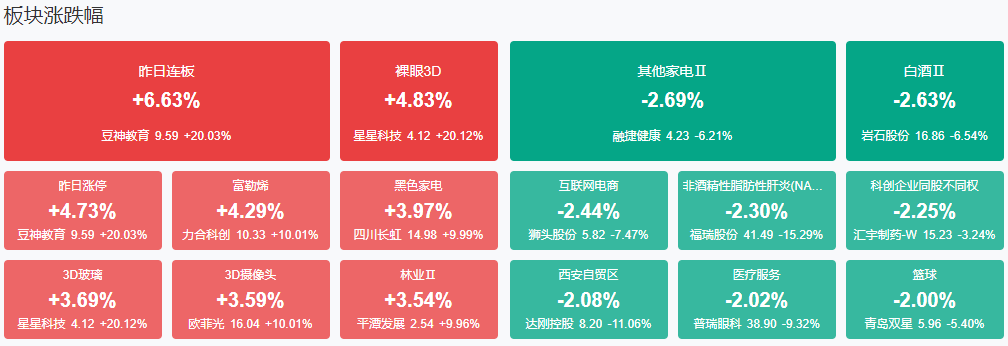 总体上个股跌多涨少,板块方面,智谱AI、消费电子、ST板块、飞行汽车等板块涨幅居前,白酒、保险、油气、医疗器械等板块跌幅居前。截至收盘,沪指跌0.86%,深成指跌0.48%,创业板指跌1.42%。