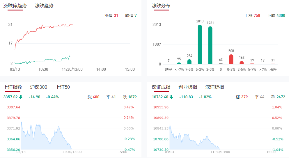 今日早盘,市场震荡调整,深成指领跌。沪深两市半日成交额1.02万亿,较上个交易日放量187亿。盘面上市场热点集中在周期蓝筹股方向,个股跌多涨少,全市场超4400只个股下跌。从板块来看,煤炭、电力股逆势走强,大有能源等涨停。黄金概念股表现活跃,明牌珠宝涨停。长寿药概念股震荡走高,德展健康涨停。下跌方面,机器人概念股集体大跌,捷昌驱动跌停;算力概念股震荡走低,朗科科技跌超10%。