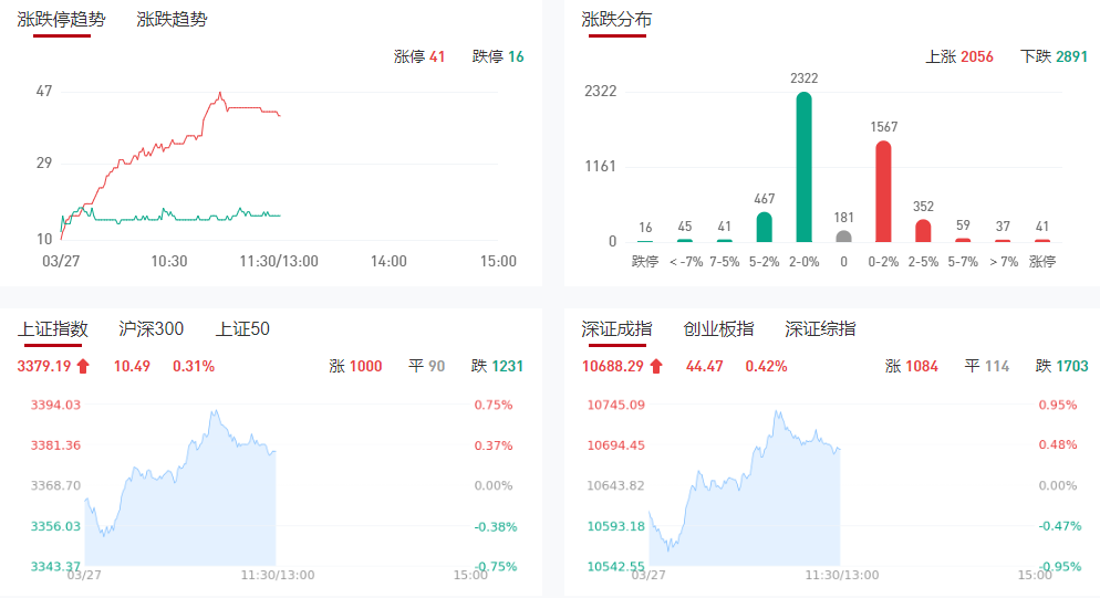 市场早盘震荡反弹,三大指数小幅上涨。沪深两市半日成交额7826亿,较上个交易日放量522亿。盘面上市场热点集中在化工和半导体两大方向,个股跌多涨少,全市场超3000只个股下跌。从板块来看,化工股集体大涨,华尔泰等多股涨停。芯片股震荡反弹,光刻机等方向领涨,海立股份涨停。下跌方面,深海科技概念股集体大跌,大连重工等跌停。