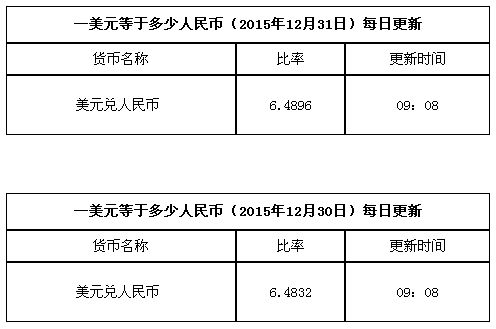 一美元兑换多少人民币? 一美元等于多少人民币?一美元等于多少人民币(2015年12月31日)每日更新如下: