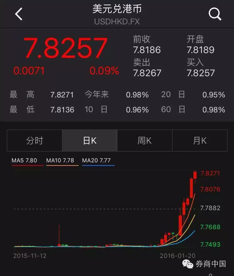 中信证券认为,近期人民币加速贬值对市场情绪的影响或是港币转弱的触发因素,而联储加息和香港脆弱的基本面是港币转跌的根本原因。市场对香港或因外储不足而放弃联系汇率制的担心是多余的。
