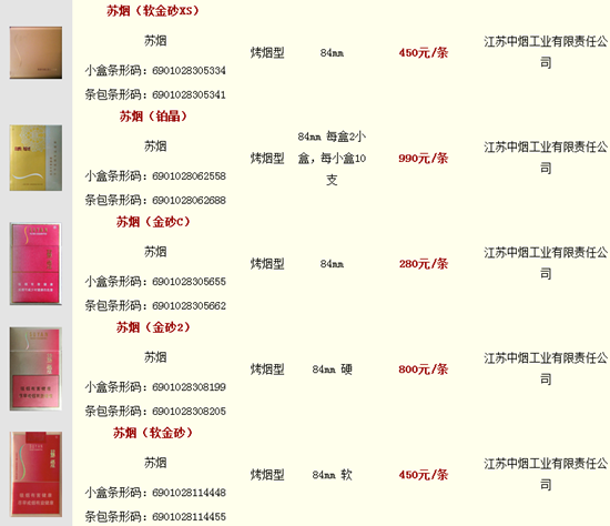 最新苏烟价价格表及图片查询: