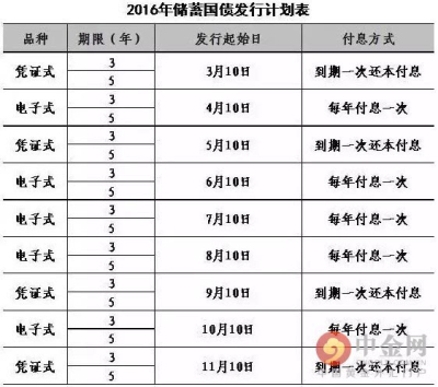 根据财政部公布的2016年国债发行计划表,今年3月至11月的每月10日都会有国债发行,发行期限有三年和五年两种,有4次为凭证式国债,5次为电子式储蓄国债。因此算上5月,今年还有7次购买国债的机会。