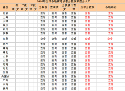 2016年全国各高校录取分数线和成绩查询