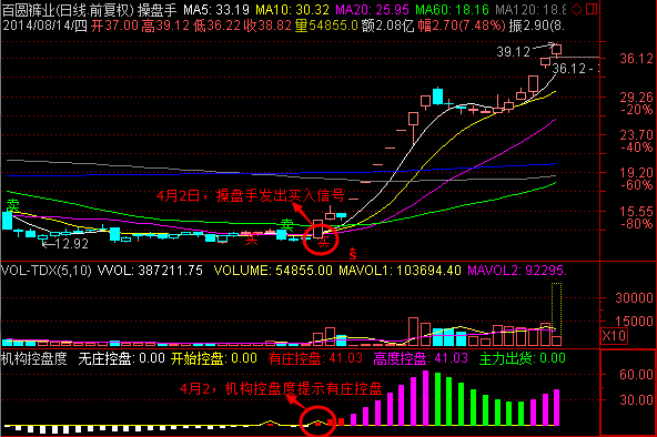 该股在4月2日《富赢版V6》操盘手指标发出买入信号,4月2日机构控盘度指标提示有庄控盘,股价震荡上扬,按照软件提示买入的用户,可以继续持股,没有按照软件发出的买入信号介入的软件用户,建议不宜追涨。