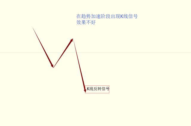 第一张图很明显整体的下跌趋势还是处于加速(走势强劲)阶段,所以如果在这种情况下出现“K线信号”作为买进依据,成功率就不怎么高。但是我们换做第二张图看到,趋势相比较之前的下跌已经明显的减速衰弱,说明很有可能空头已经乏力,多头已经逐渐占据优势,如果在这种情况下出现“K线信号”买入成功率就能大大提升。